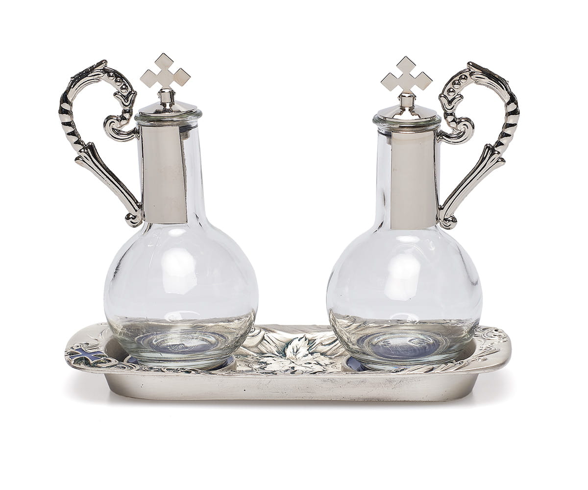 Ampułki z mosiężną tacką. Pojemność 200 ml., wymiary tacki 23x14 cm.
