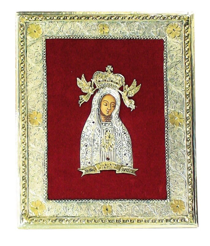 Ikona Matka Boża Nieustającej Pomocy wykonana na wzorze El Greco z miedzi srebrzonej i złoconej elektrolitycznie 24- karatowym złotem. Tył ikony wyłożony bawełnianym aksamitem. Produkt posiada certyfikat autentyczności ręcznego wykonania wraz z opisem dzieła.