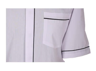 Elegancka, a zarazem sportowa, koszula wykonana jest z tkaniny 60% bawełna/40% włókien sztucznych. Wykończona czarnym lub granatowym obszyciem w postaci wypustki na rękawach, plisce i kieszonce. Dostępna w kolorze białym z odpowiednim kolorem obszywki. Zapewnia duży komfort użytkowania.