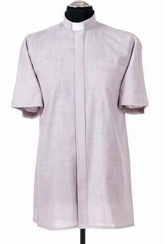 Koszula kapłańska, lniana z krótkim rękawem. Wykonana z bardzo dobrej gatunkowo, naturalnej tkaniny 70% len i 30% bawełny. Specjalny splot włókien lnianych i bawełnianych zapewnia lekkość i delikatność w ich noszeniu. Lekko prążkowana, która zapewnia duży komfort użytkowania i jest przewiewna. Doskonała w upalne dni jak i w codziennym użytkowaniu.
