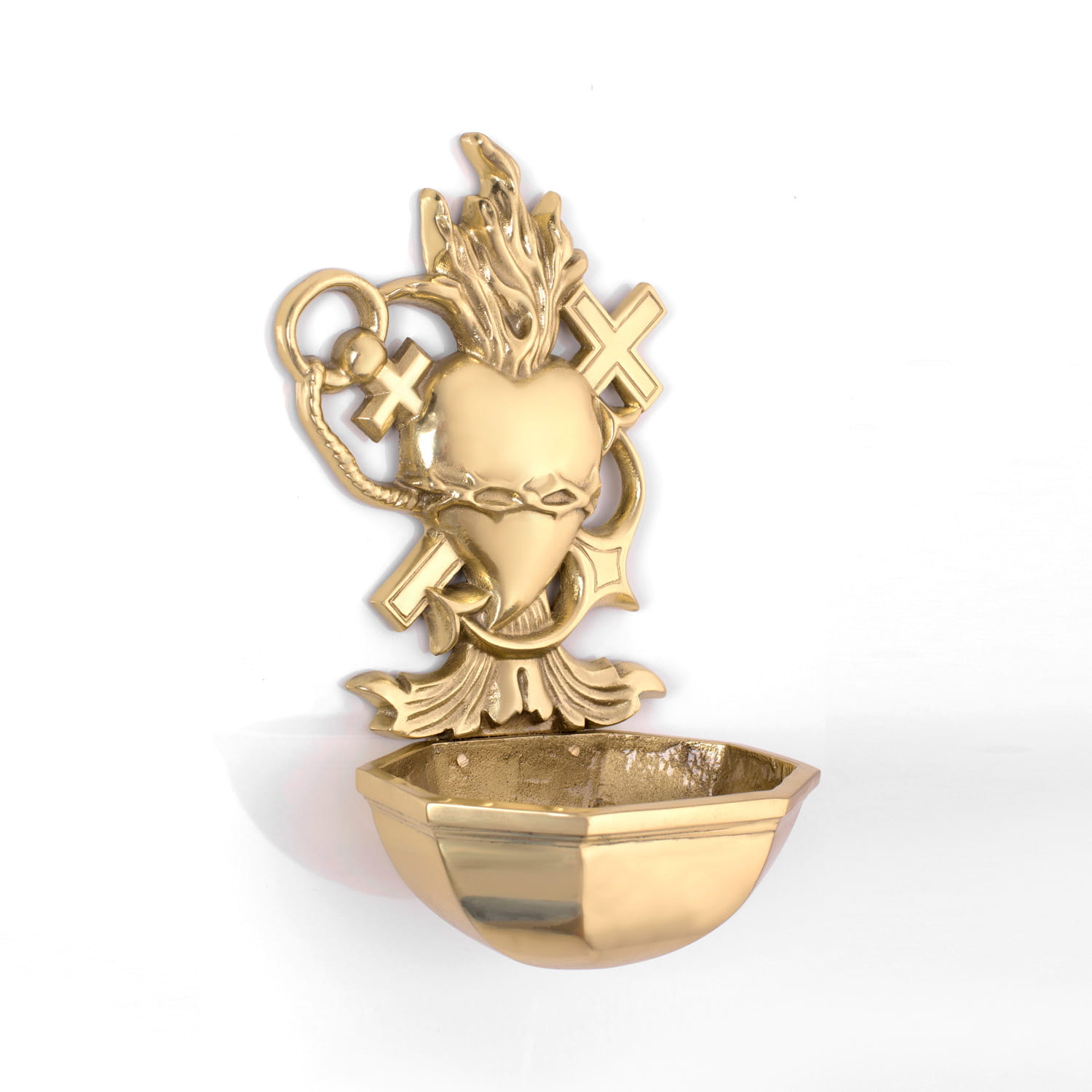 Kropielnica z Sercem Pana Jezusa odlewana z mosiądzu.