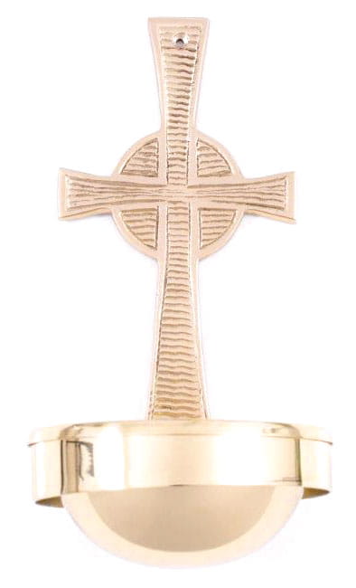 Kropielnica z Sercem Pana Jezusa odlewana z mosiądzu.