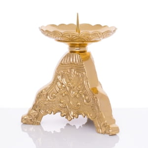 Lichtarz wykonany z mosiądzu, zdobiony grawerami.