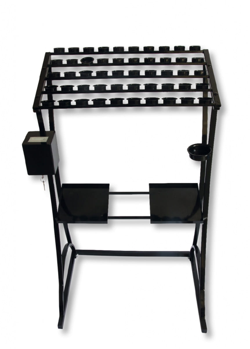 Świecznik stalowy zabezpieczony lakierem proszkowym. Do samodzielnego montażu. Ze skarbonką oraz miejscem na zapałki. Dostępny w dwóch rozmiarach.