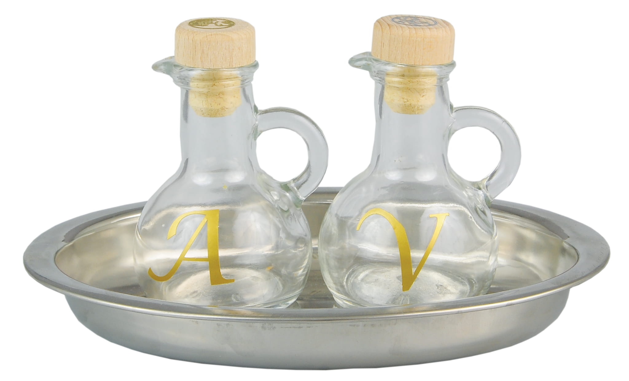 Ampułki z mosiężną tacką. Pojemność 200 ml., wymiary tacki 23x14 cm.