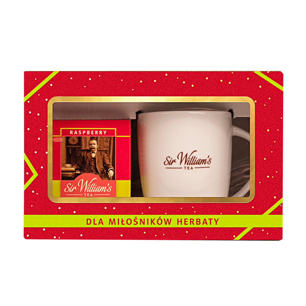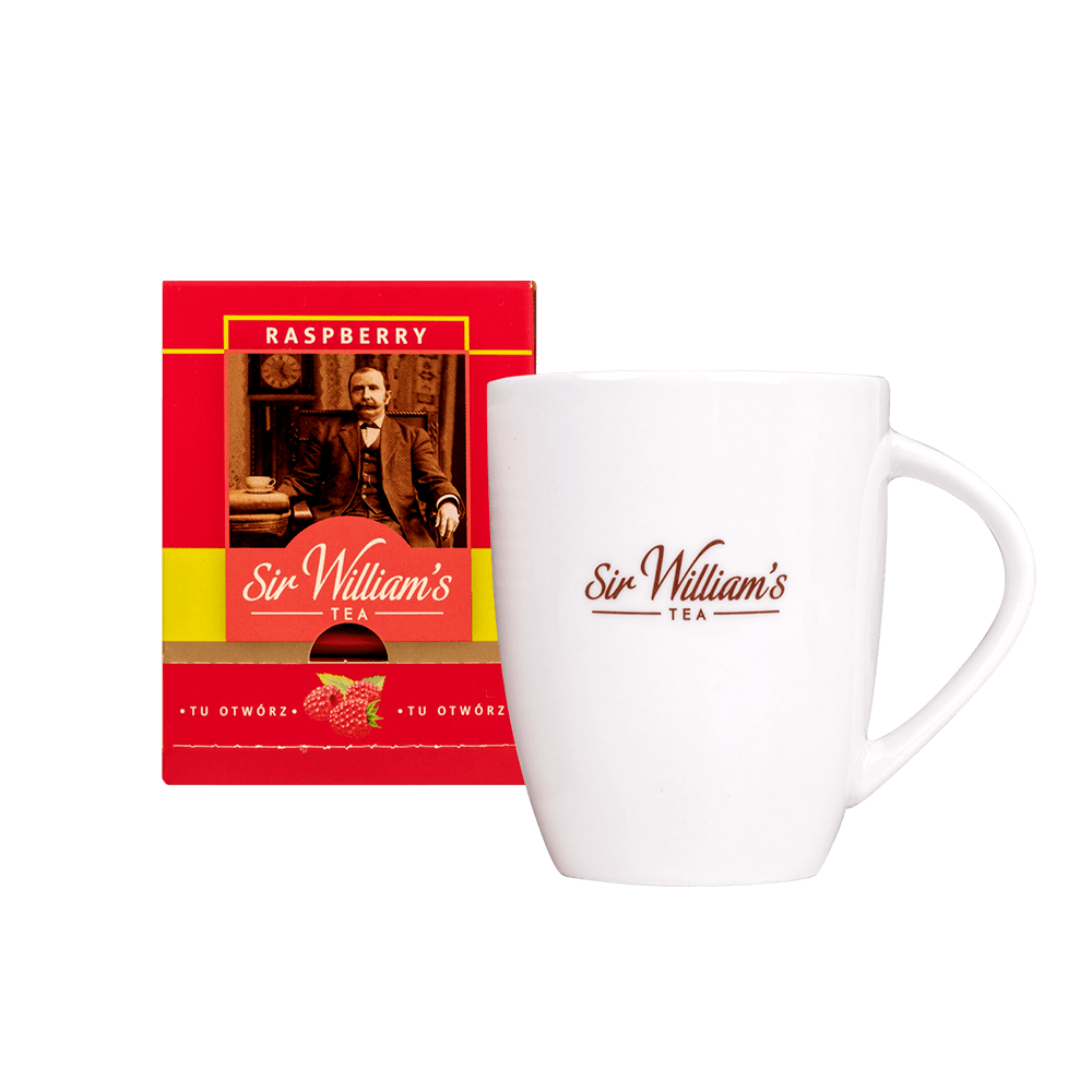 ZESTAW SIR WILLIAM’S TEA 15 HERBAT OWOCOWYCH RASPBERRY Z KUBKIEM PORCELANOWYM (ZSW317)